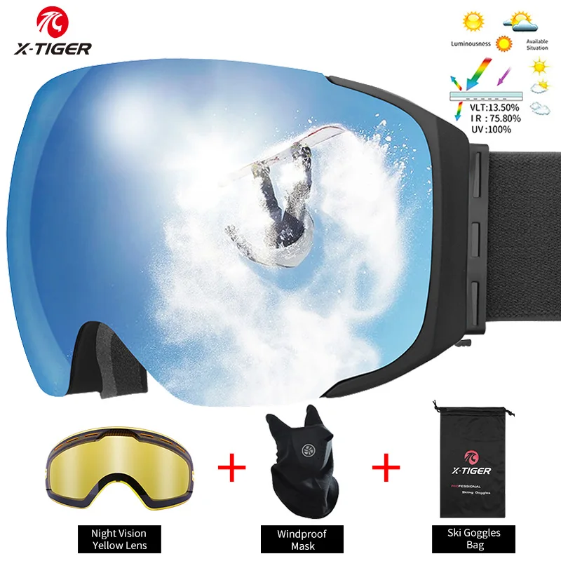 Name: X-TIGER gafas de esquí magnéticas con máscara de esquí deportes de invierno esquí de doble capa Anti-niebla gafas de esquí Anti-reflejos gafas de Snowboard
