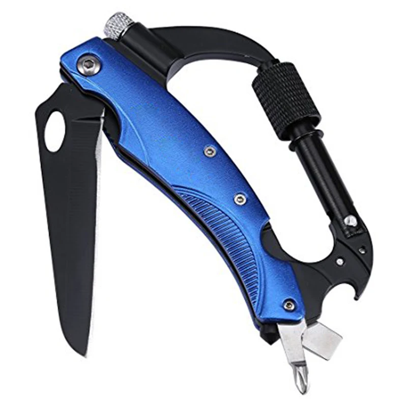 Name: Mosquetón 8 en 1 con Clip para llavero con linterna LED EDC herramienta de equipo de supervivencia para Camping tienda de senderismo xr-hot